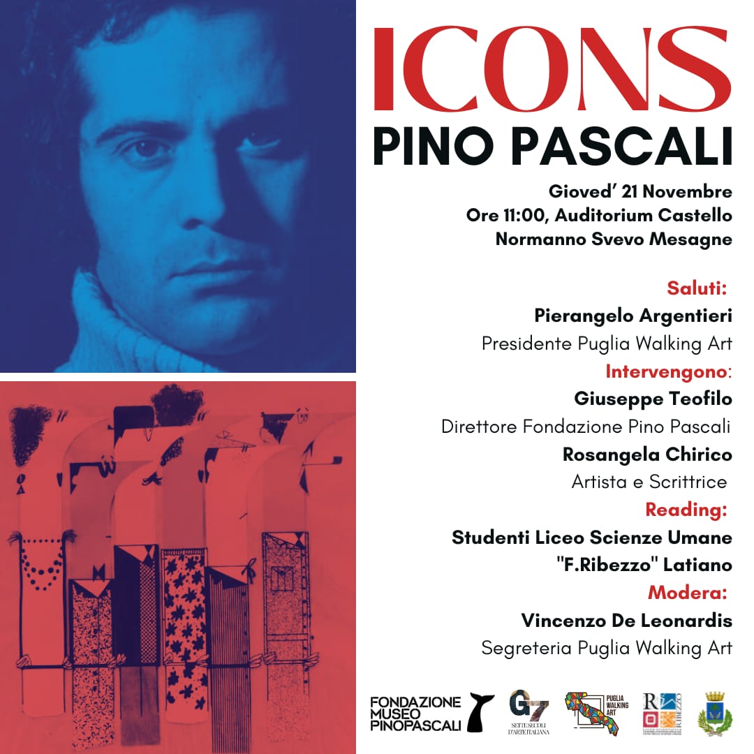 Giovedì 21 novembre 2024, alle ore 11:00, presso l’Auditorium del Castello normanno svevo di Mesagne si terrà l’incontro dal titolo “Icons: Pino Pascali”, evento collaterale alla mostra “Sette Secoli d’Arte Italiana” dedicato all’artista pugliese scomparso prematuramente nel 1968.Data: Mercoledì, 20 Novembre 2024